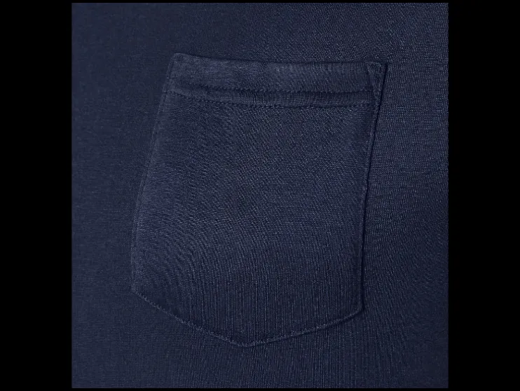 - Donkerblauw/groen: Shirt met ronde hals en opgezette borstzak
