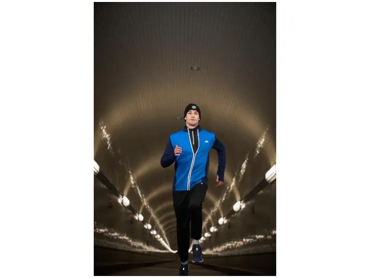 - Voorzien van een opstaande kraag en doorlopende ritssluiting met kinbescherming