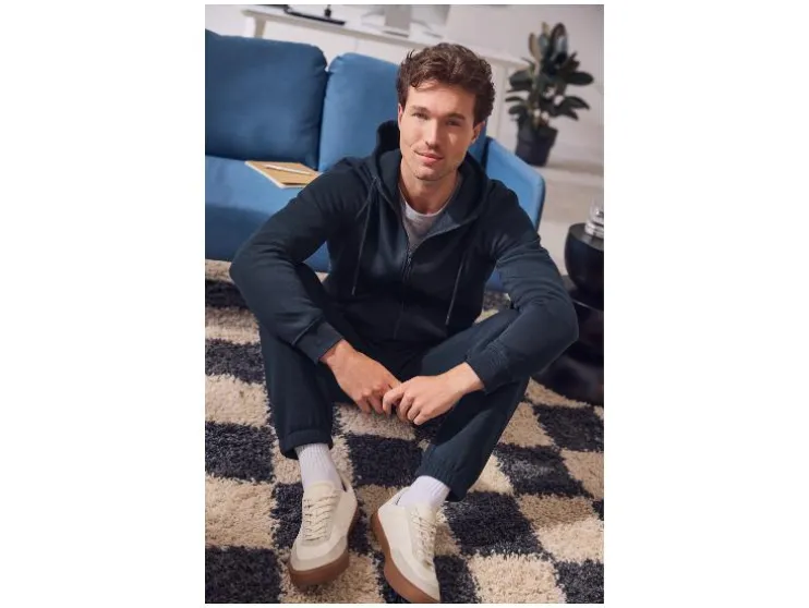 | Detail: | opgeruwde binnenkant, kangoeroezakken, boorden aan mouwen en zoom |