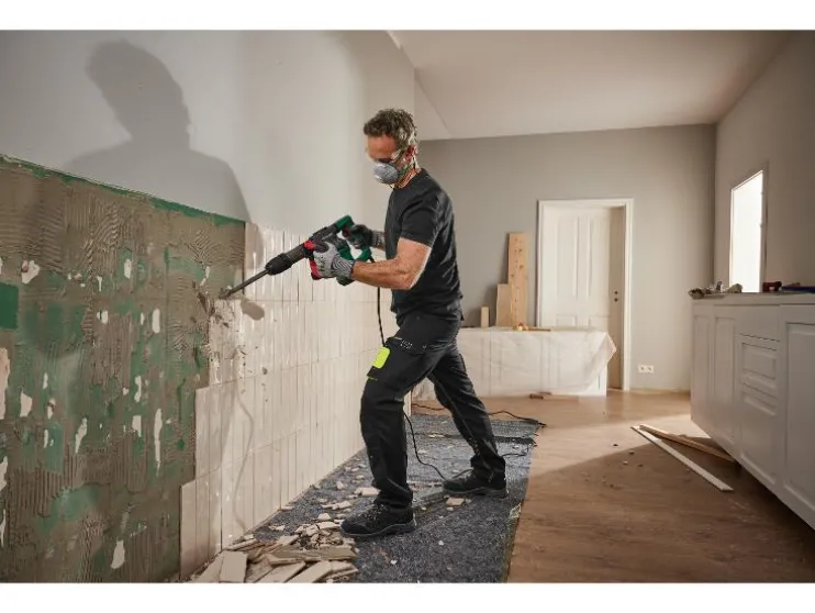 - Met praktische zakken voor gereedschap, mobiele telefoon, rolmaat etc.