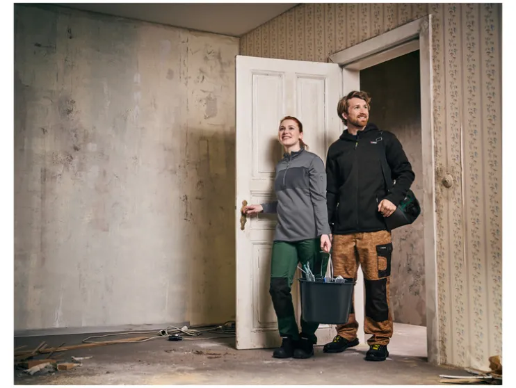 | Detail: | Comfortabele gedeeltelijke elastische tailleband voor optimale bewegingsvrijheid, met praktische zakken voor gereedschap, mobiel, duimstok etc. |
