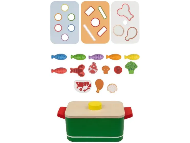 | Leveringsomvang: | Weegschaal: 1x weegschaal, 10x cijfers, 10x koekjes, 10x papiergeld Kookpot: 1x kookpot met deksel, 3x sorteerschijven, 14x ingrediënten |