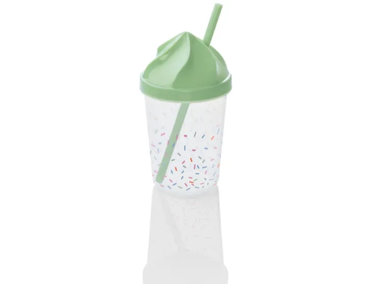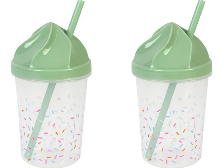 - Afmetingen: beker: ca. Ø 8 x H 14 cm, rietjes: ca. Ø 0,7 x L 17 cm