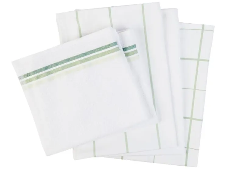 - 3 afwas- en 2 frotté keukenhanddoeken