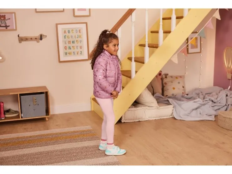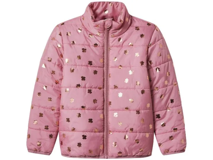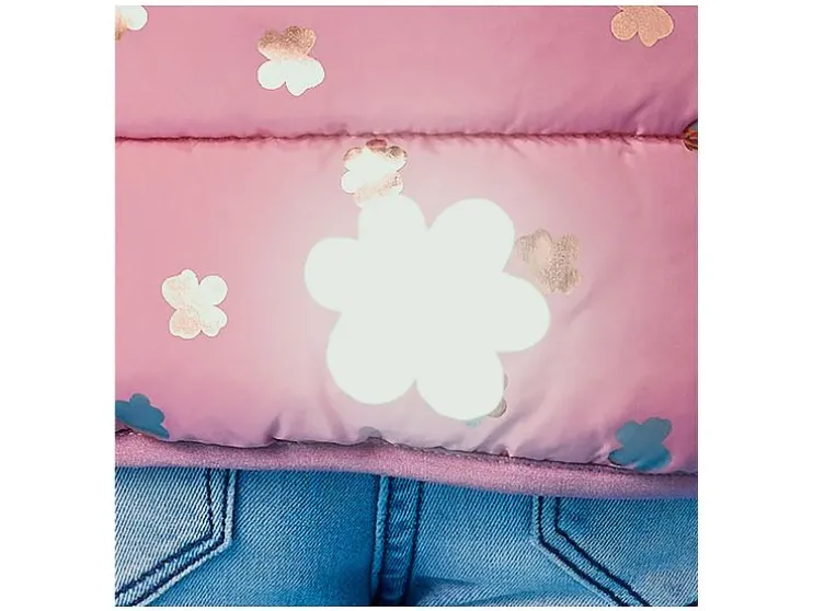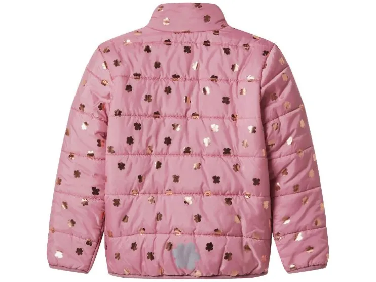 | Detail: | doorlopende ritssluiting, kinbescherming en steekzakken, reflecterend decoratief element; roze: metallic print |