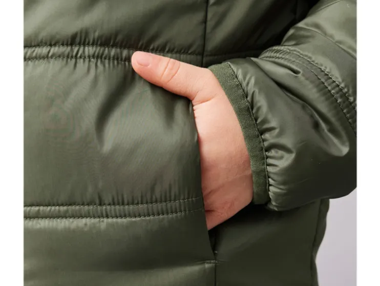 | Detail: | doorlopende ritssluiting met kinbescherming, zijzakken |