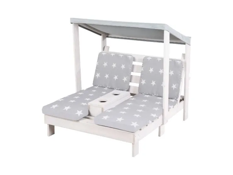 | Leveringsomvang: | tweepersoonsligbed voor kinderen, UV-bestendig textiele dak, 2 textiele kussens „Little Stars“, drankhouder |
