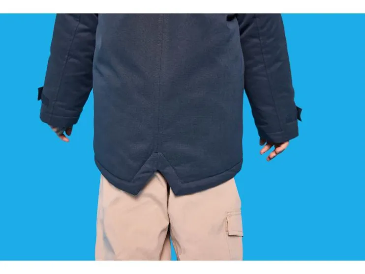 - Met een capuchon, opgestikte zakken met klep en ritssluiting met stormflap en kinbescherming