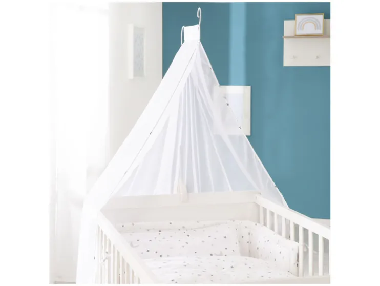 Zoek je een bed dat alles in één biedt? Het roba kinderbed ‘Sterrenmagie’ is een complete set met bed, matras, beddengoed, hemel en hemelstang. Perfect voor een comfortabele en stijlvolle start.