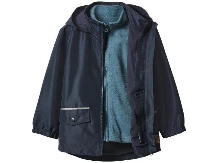 | Materiaal: | Buitenjas: bovenmateriaal/mouwafwerking: 100 % polyester; romp- en capuchonvoering: 65 % polyester, 35 % katoen Binnenjas: 100 % polyester |
