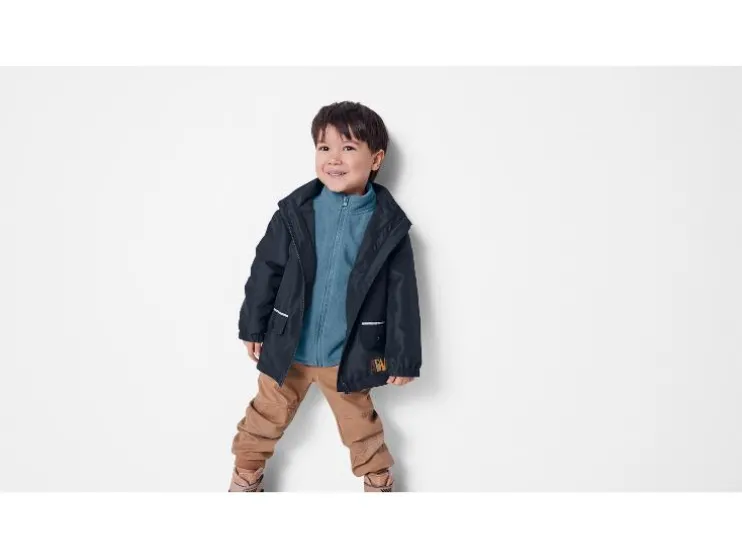| Detail: | opgestikte klepzakken, rits met kinbescherming, buitenjas met reflecterende elementen, verlengde achterkant, fleece binnenjas met praktisch naamplaatje, YKK-merk rits |