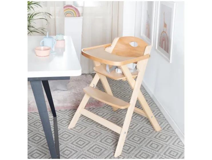 - De hoge stoel, vervaardigd in overeenstemming met de veiligheidsnorm EN 149881: 2006 + A1: 2012, wordt gebruiksklaar geleverd, opgevouwen
