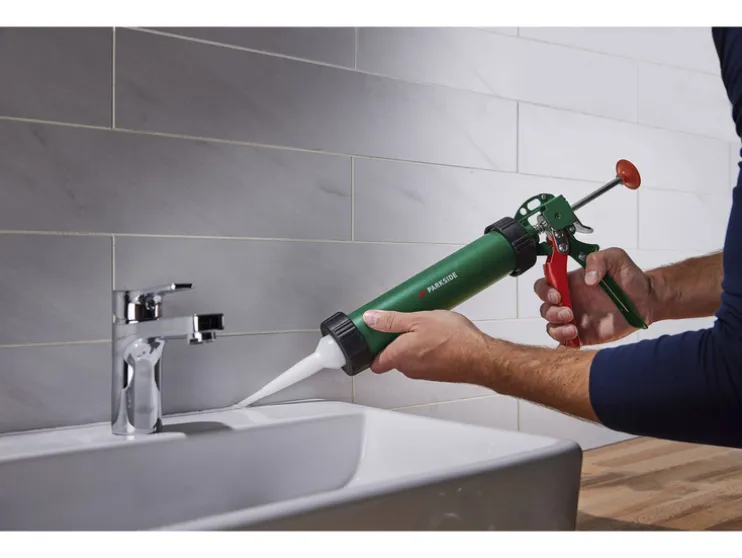 Inbegrepen accessoires: 1x drukschijf voor spuitzak, 2x opzetstukken, 1x staaf voor het doorboren van gedroogde kitpatronen, 2x voegglijder voor ronde en platte voegen, 1x knijppistool