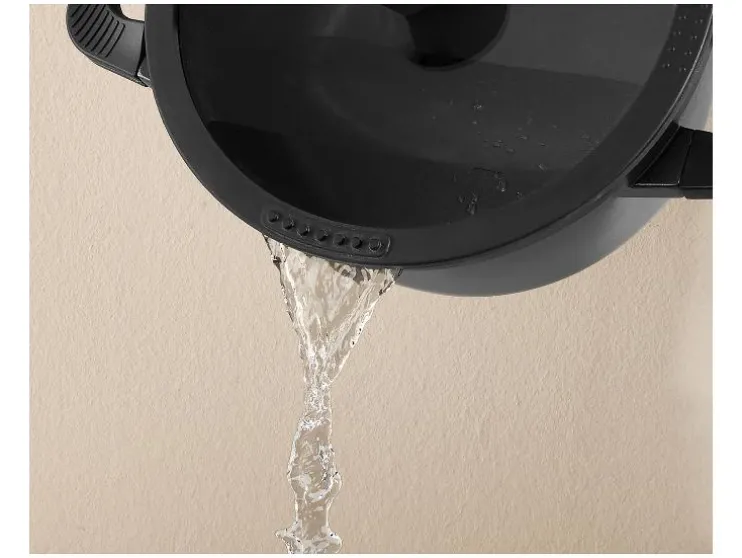 - Dekselrand met twee gemarkeerde schenkzeven voor eenvoudig afgieten