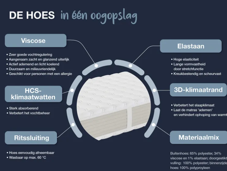 - Dubbele overtrek met 3D-klimaatband en middenrits voor een verbeterd slaapklimaat en optimale hygiëne