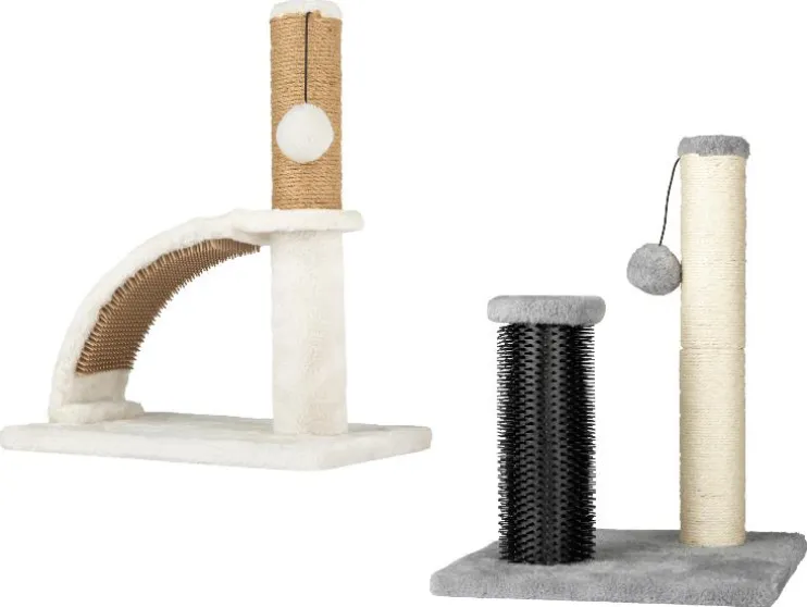 | Leveringsomvang: | met massageplank: 1x bodemplaat, 1x jute stam met pluchen pompon, 1x pluchen stam, 1x gebogen element met sisaltapijt en massage-element met massageborstel: 1x bodemplaat, 2x sisalstam, 1x massageborstel, 1x pluchen pompon |