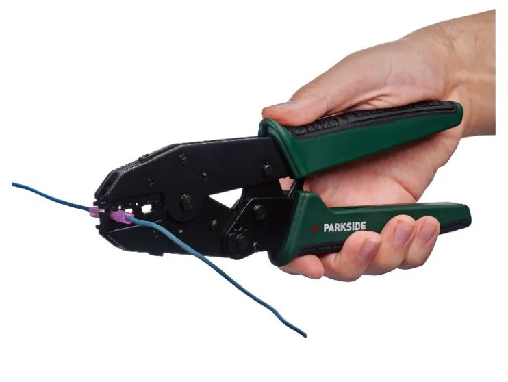 - De tang heeft een traploze vergrendeling die automatisch loslaat bij de juiste krimpdruk, zo werk je altijd met de juiste kracht en zonder schade aan je materiaal