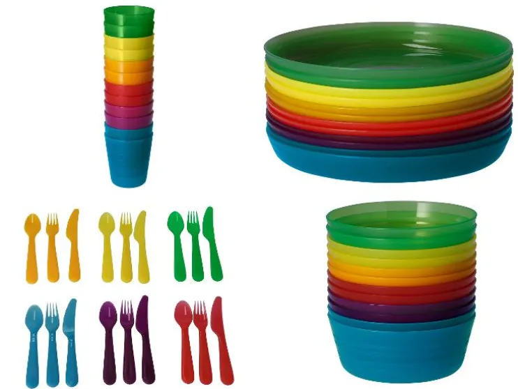 | Leveringsomvang: | Bekers: 12x bekers Borden: 12x borden Bestek: 12x messen, 12x vorken, 12x lepels Schaaltjes: 12x schaaltjes |