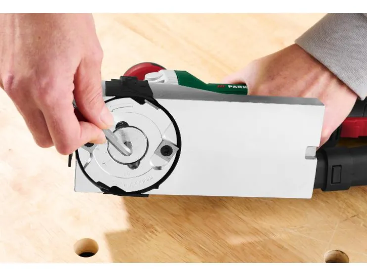- 2 dubbelzijdige omkeerbare messen met traploos instelbare afnamediepte (axiale freesdiepte)