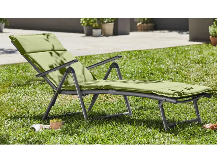 - Dit ligstoelkussen is voorzien van 4 cm hoge wattering en blijft goed zitten dankzij de elastische rugband en bevestigingsbanden die je aan de stoel kunt binden