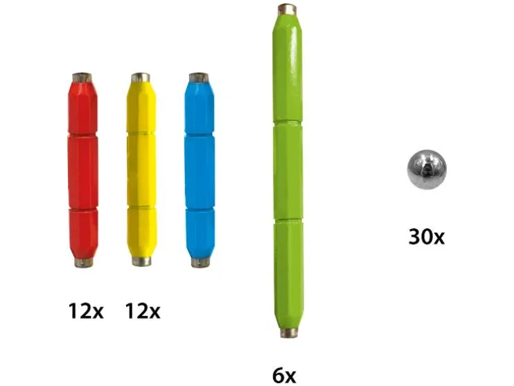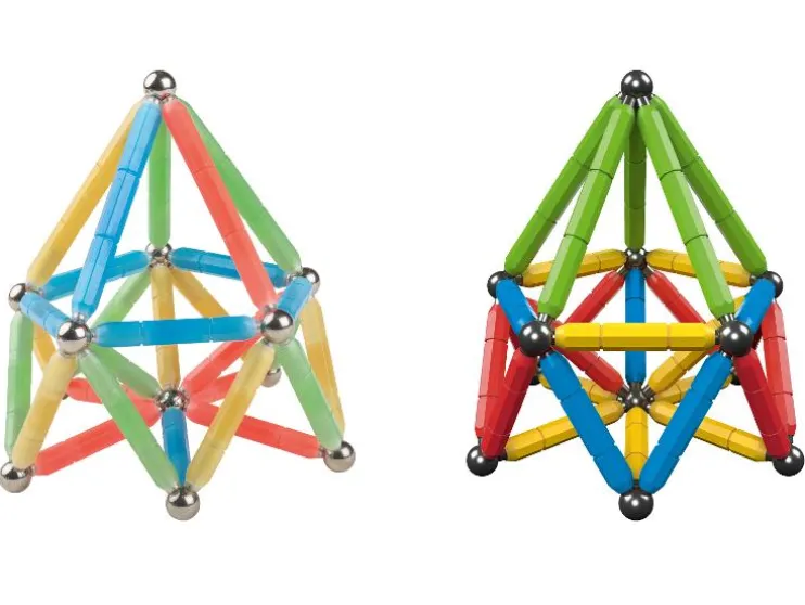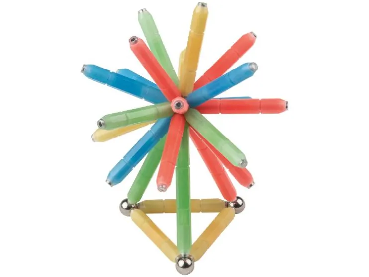 | Leveringsomvang: | Magneetbouwset Lichtgevend: 6 grote magnetische staven, 24 kleine magnetische staven, 26 ballen Magneetbouwset Kleurrijk: 6 grote magnetische staven, 28 kleine magnetische staven, 26 ballen |