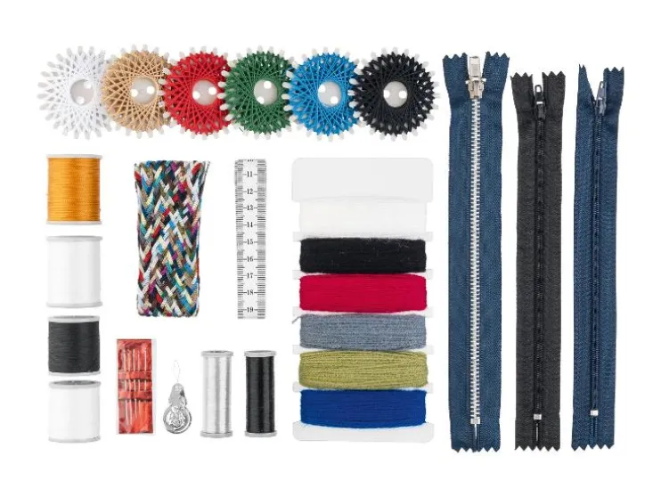 | Materiaal: | Katoenen naaigaren: 100 % katoen; Jeansnaaldraad: 100 % polyamide; Speciale stergaren: 100 % polyester; Universeel stopnaaldraad: 100 % polyacryl; Transparant naaigaren: 100 % polyamide; Naaigarenvlecht: 100 % polyester |