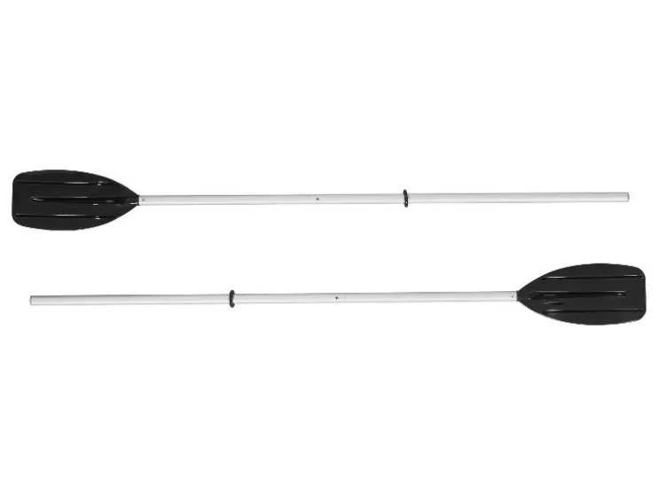 - 1 paar aluminium peddels met kliksysteem, versterkte bladen en vrij positioneerbare aanslagringen