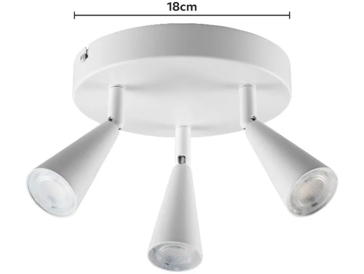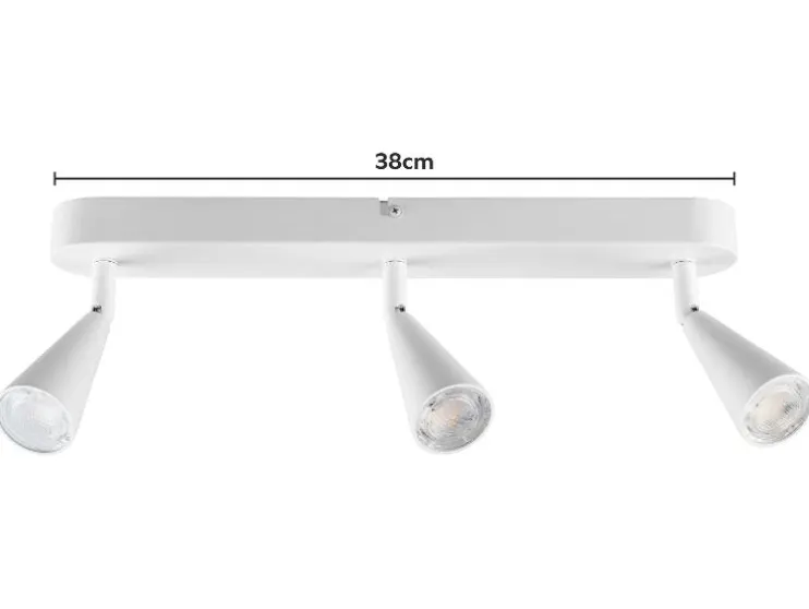 | Afmetingen: | Plafondspots: ca. Ø 18 x H 15,8 cm; Plafondrail: ca. L 38 x B 5,5 x H 15,5 cm |