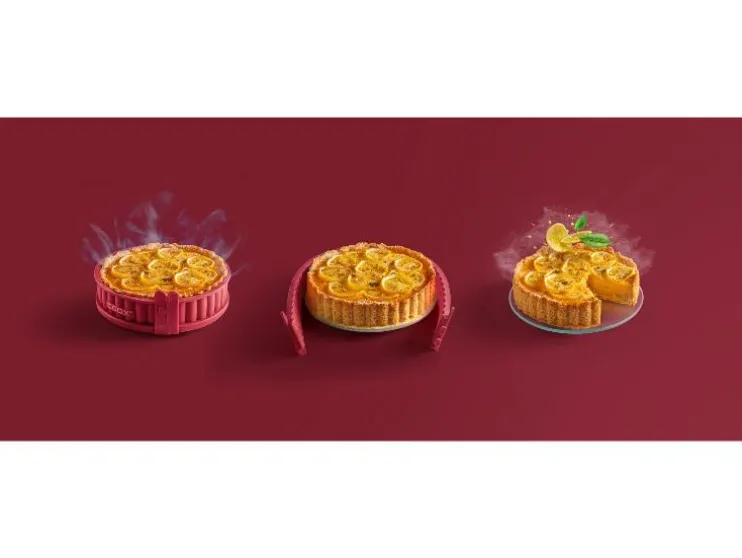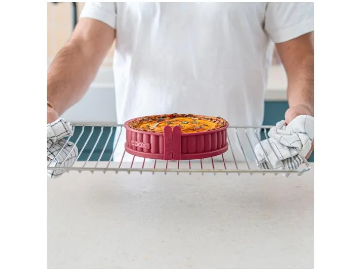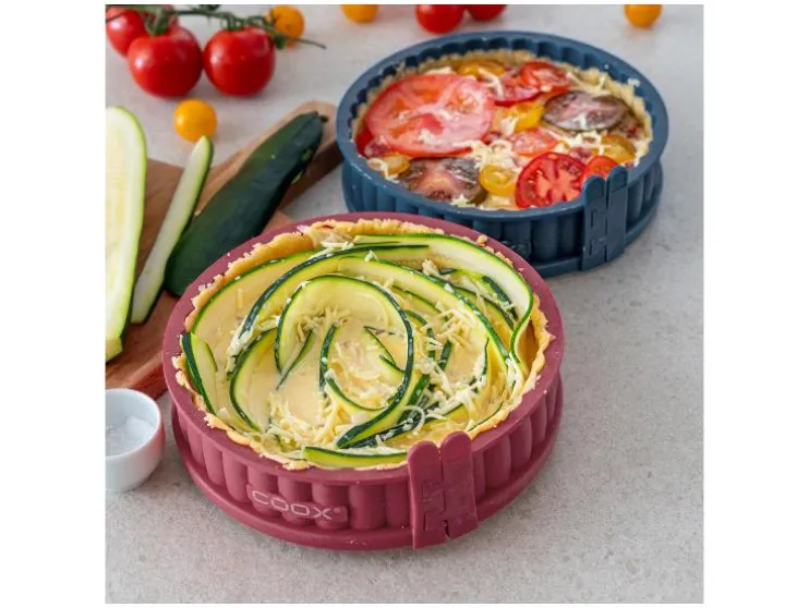 Het handzame formaat maakt veel variaties, eenvoudige porties en aantrekkelijke presentaties mogelijk – perfect voor snacks, voorgerechten of buffetten. De quichevorm van coox met afneembare siliconenrand en bijpassende serveerschaal van glas biedt hiervoor de perfecte maat. De golvende rand geeft het gebakken product de klassieke quiche-look en is snel en gemakkelijk te reinigen na gebruik.