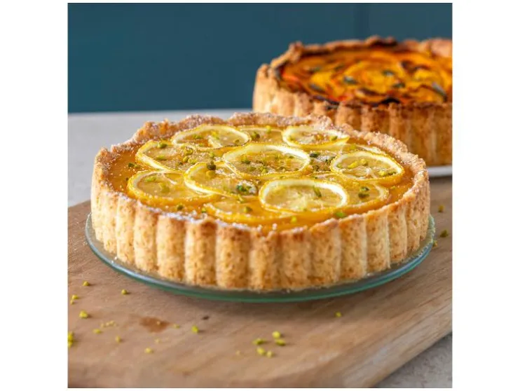 - Quichevorm met glazen serveerschaal