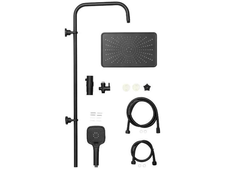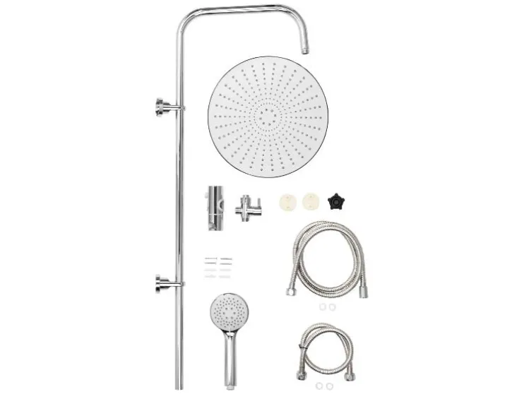 - Hoofddouche en handdouche van kunststof, stang en slangen van roestvrij staal