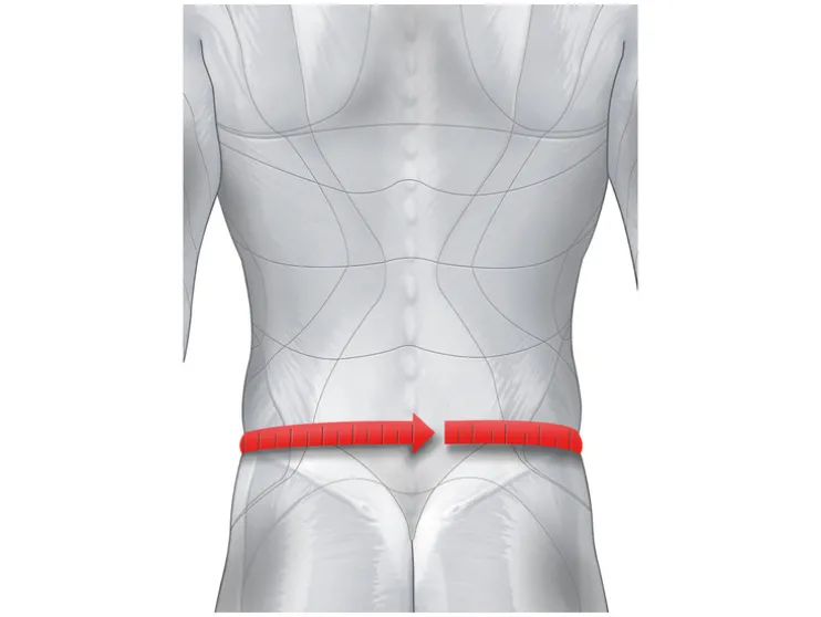 - Stabiliserende brace met ingewerkte baleinen ter ondersteuning en ontlasting van de lendenwervelkolom