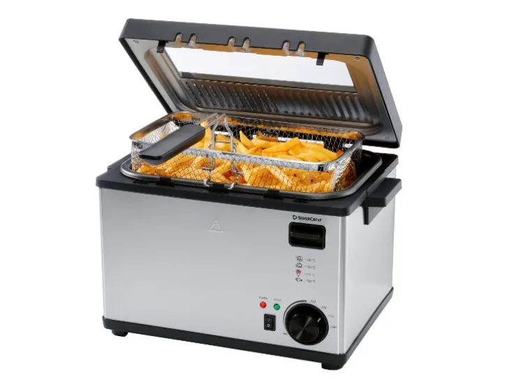 Met deze roestvrijstalen frituurpan bak je makkelijk verschillende snacks en gerechten. De pan wordt geleverd met 3 mandjes, één grote en 2 kleintjes, ideaal voor friet en snacks tegelijk. Je stelt de temperatuur traploos in tot 190 °C en maakt de onderdelen na gebruik weer makkelijk schoon.