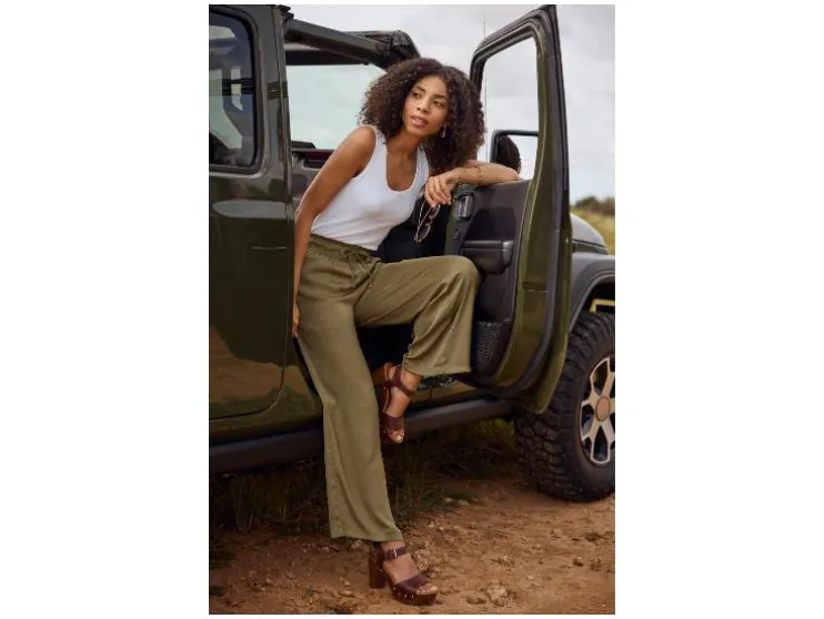 | Detail: | steekzakken, elastische tailleband met plooien en koord |