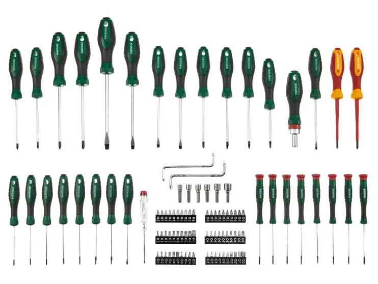 | Inhoud: | 60x bit, 8x precisieschroevendraaier, 21x schroevendraaier 2x 1000-V-schroevendraaier, 1x VDE-spanningstester met metalen clip, 1x ratelschroevendraaierhandgreep, 2x haakse schroevendraaier, 6x inbusdopsleutel |