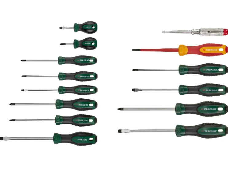 - 2x schroevendraaier met platte kop: 1,0 x 5,5 x 100 mm / 1,2 x 6,5 x 125 mm
