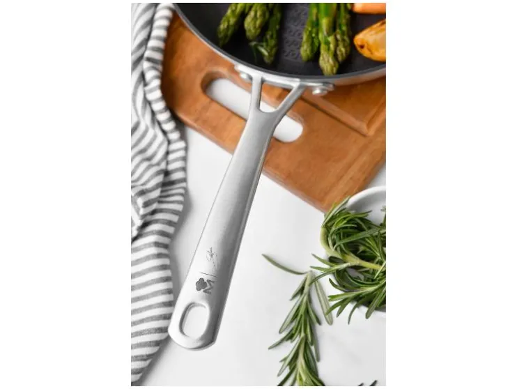 - Je kunt zonder zorgen metalen keukengerei gebruiken in deze pan