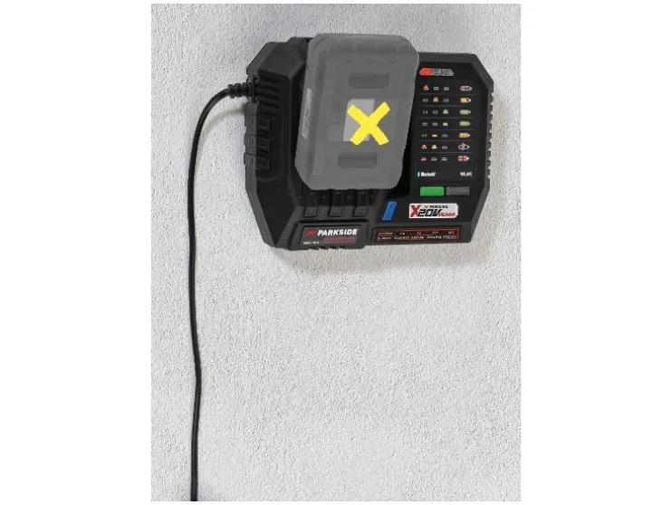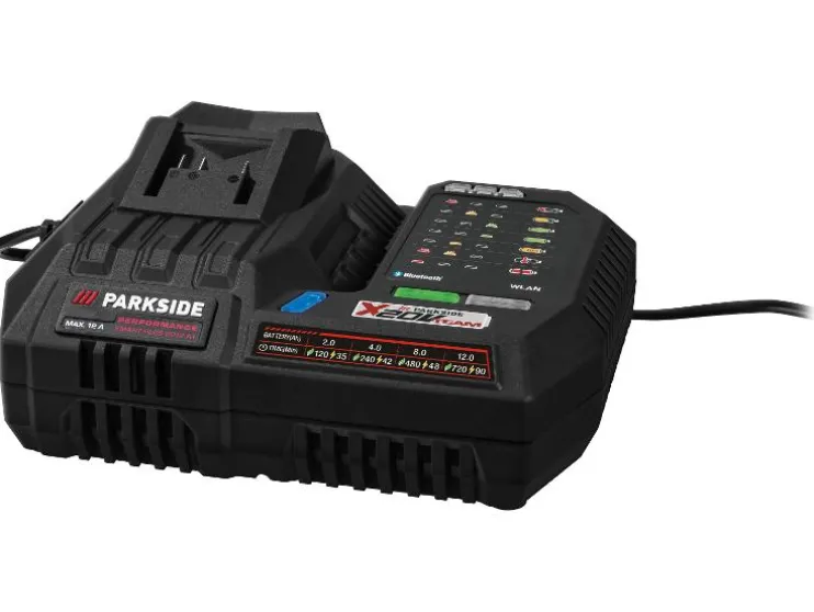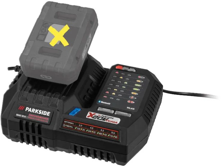 - Gegevens opvragen, meldingen naar de mobiele telefoon laten sturen en laadprofielen configureren via wifi of via Bluetooth® via de PARKSIDE-app