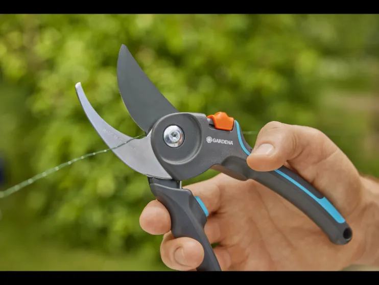 Sterke prestaties – eenvoudige bediening. Als slimme oplossing voor moeiteloos snijden beschikt de GARDENA tuinschaar PremiumCut Pro voor vers hout over een snijdiameter van meer dan 2,4 cm, bypass-snijmechanisme, beschermende polsbuffer, eenhands-veiligheidsvergrendeling, een stevige veer en GARDENAs kenmerkende PowerCoating.