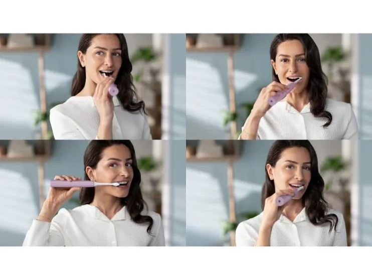 - 2-minuten timer en 4-zone herinnering helpen je grondig te poetsen