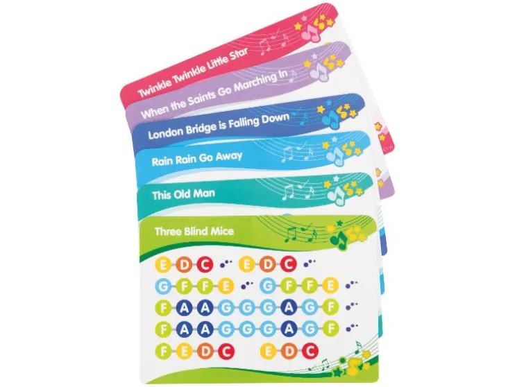 - 3 verschillende modi om te spelen: xylofoon/piano-modus, 6 voorgeprogrammeerde liedjes, ritmische patronen met één toets en één noot
