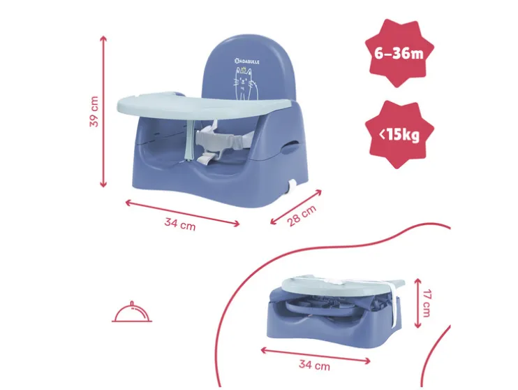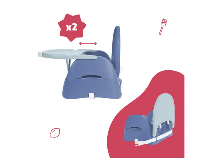 Je baby zit comfortabel in zijn stoelverhoger terwijl hij de smaken van wortels, broccoli en andere groenten en fruit ontdekt! De ergonomische, omhullende en brede vorm van het zitvlak zorgt voor maximaal zitcomfort voor je kind van 6 tot 36 maanden (tot 15kg). Je kunt de stoelverhoger ook gebruiken op alle soorten stoelen (bijvoorbeeld voor de woonkamer, bar of tuin). Het praktische en hygiënische grote eettableau is in hoogte verstelbaar en past zich dus altijd aan de groei van je kind aan. Hij is afneembaar en kan gemakkelijk achter de rugleuning worden opgeborgen zodat hij niet kwijt raakt. De stoelverhoger kan worden omgevormd tot een kleine stoel voor activiteiten waarbij je bijvoorbeeld je handen moet gebruiken!