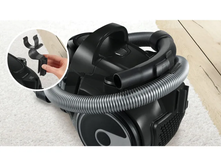 - Past makkelijk in de kast dankzij ruimtebesparende slangoplossing