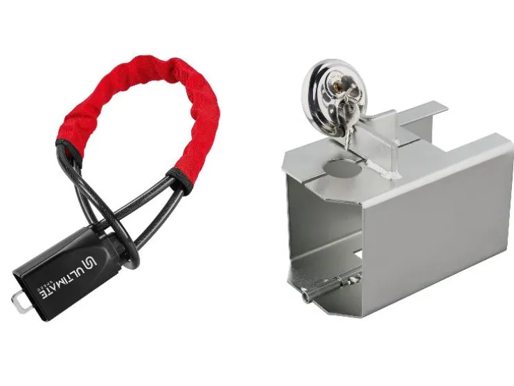 | Materiaal: | Stuurslot: ABS, staal, PVC, nylon; Aanhangwagenslot: staal |