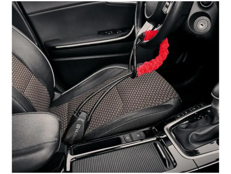 - Blokkeert het stuur zichtbaar en schrikt diefstal af