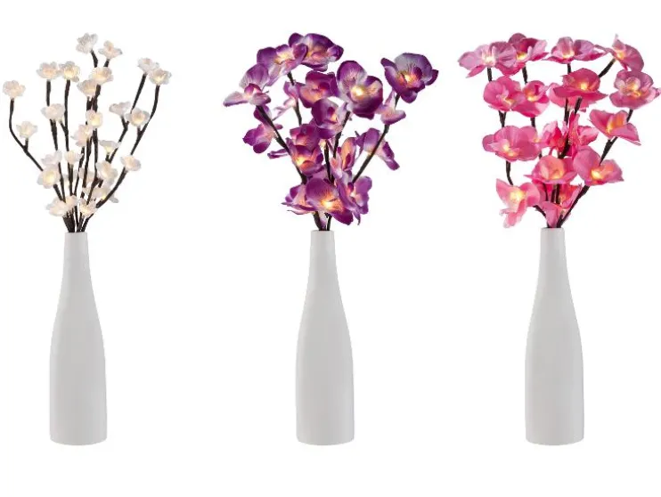 - Orchideebloesem: 20 textielbloesems met op batterijen werkende LED-lampjes