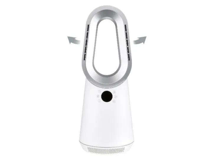 - Bladeless (zonder rotors) – geen risico op verwondingen en eenvoudige reiniging