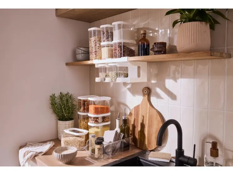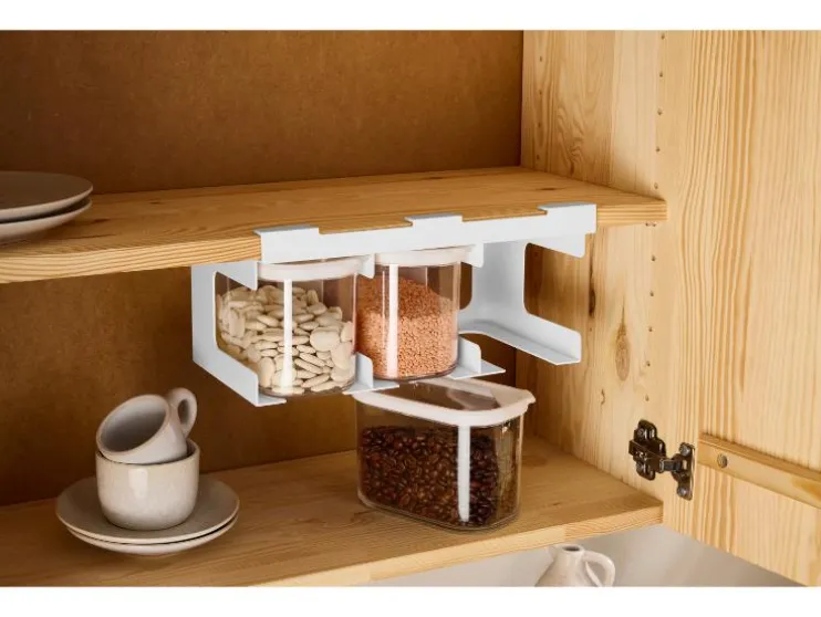 De SILVERCREST® vershoudbakjes met rek zijn ideaal voor kleine keukens. Hang ze eenvoudig onder een plank of kast en bewaar je droge levensmiddelen netjes en overzichtelijk.