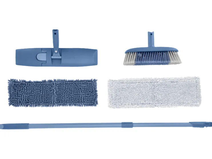 Deze veelzijdige reinigingsset is ideaal voor het schoonmaken van alle gangbare vloertypes in huis. De set bevat een telescopische steel, een vloerplaat, twee soorten microvezelhoezen en een bezem. Alles is compatibel binnen de Switch & Clean serie.